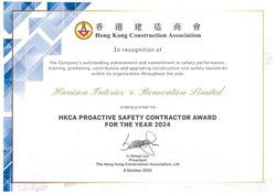 Awarded Unit: Hanison Interior & Renovation Limited |  | HKCA Safe Person-in-Charge Award for the Year 2024