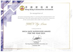 Awarded Unit: Hanison Construction Company Limited Awardee: Yuen Sze Lam |  | HKCA Safe Supervisor Award for the Year 2024